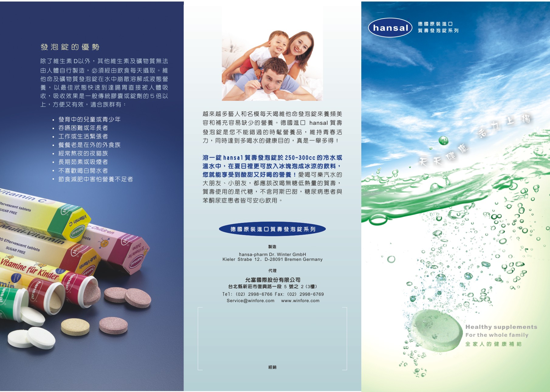 hansa-pharm Dr.Winter GmbH 成立於1985年,至今已有25年以上發泡錠製造經驗,其維他命及礦物質發泡錠產品除在德國享有盛名外,更外銷至世界各國。